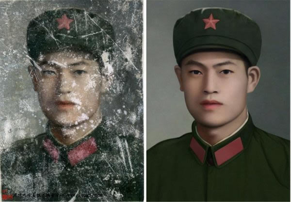 你会说,懂ps的人都可以做老照片修复了。对,但关键的一点就是要对美术有一定的基础。翻新照片不是搞设计一个步骤一个效果,而是像绘画写字一样,大家都懂拿笔,都能按照模样画和写,但画出来的写出来的大不相同。有的书法家样,有的潦草。